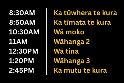 Our Year 1- Year 8 classes are taught in Te Reo Māori total Immersion Level 1 . All of our Year 5-8 tamariki particpate in English classes for one hour, four days a week. We have ten classes and our Te Reo Pākehā classroom and Digi Classroom.